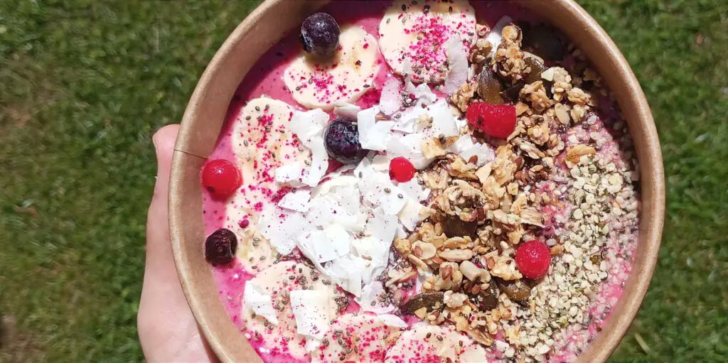 This is mainly a summer place to visit if you’re in the mood for coffee, since they don’t have a lot of space inside for sitting. But in summer this is a lovely place. Usually there are a few tables outside in the grass, but people also love to sit at the benches next to the little river. The tropical, colourful wall inside is definitely an eye catcher. They have options for vegetarians and vegans as well, like the vegan date balls, dragon fruit smoothie and the acai bowl.
